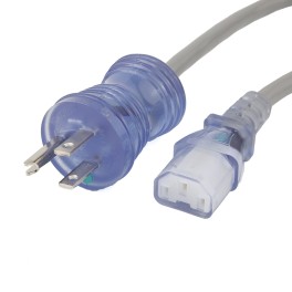 NEMA 5-15PHG Clear to IEC-60320-C13 Clear, SJT, 14 AWG, 15A/125V, Gray Color