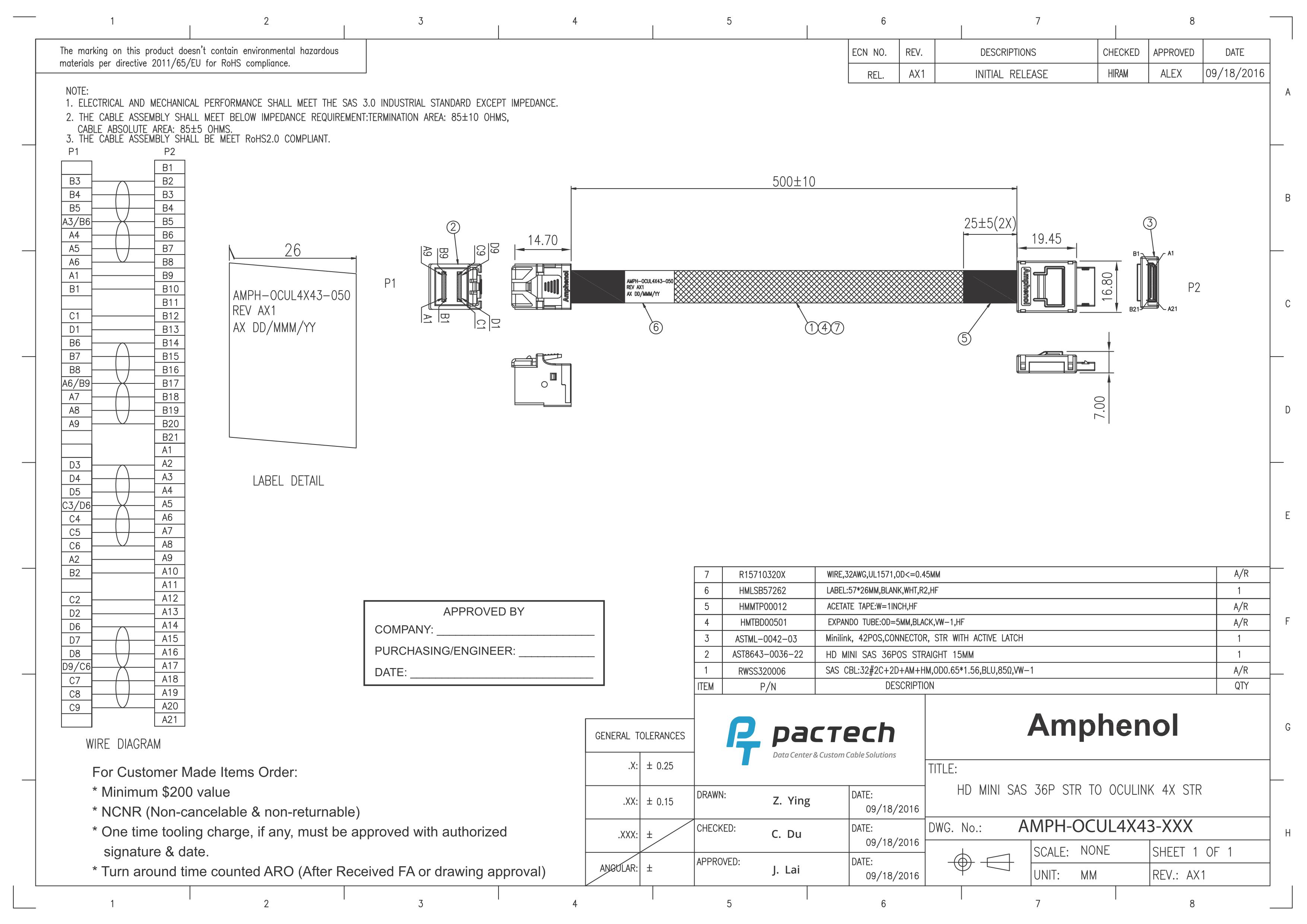 - High performance cable by Amphenol featuring differential pair signaling with less than 10ps/m in pair skew and maximum of 6dB/m attenuation at 4.5GHz. Foil in cable construction minimizes EMI