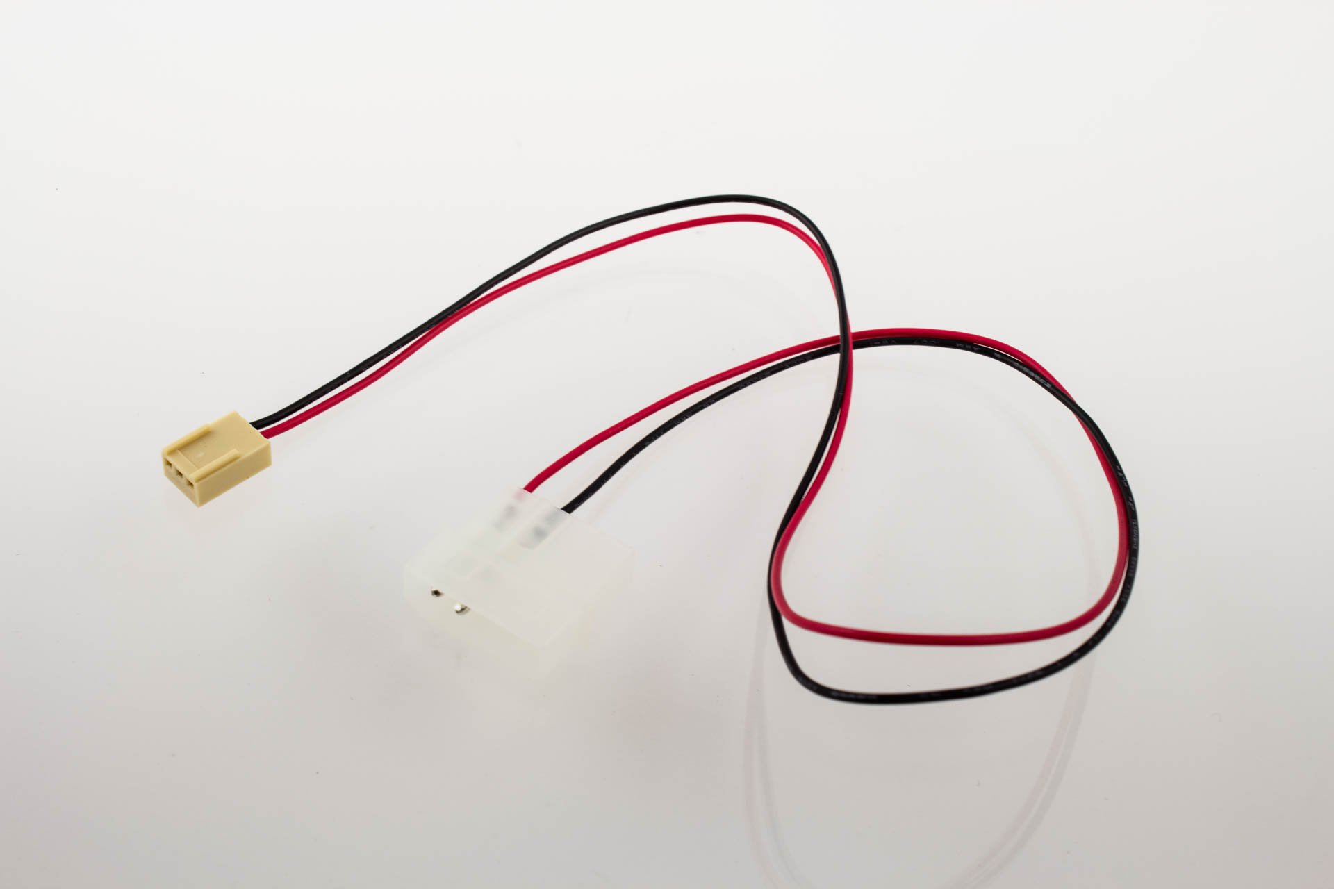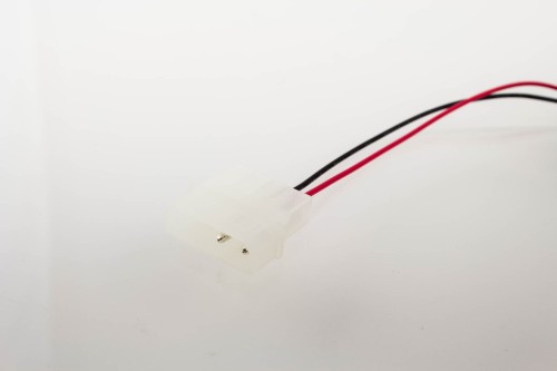 This cable provides a power connection between a single fan motherboard power connector and up to two 5V DC fans.