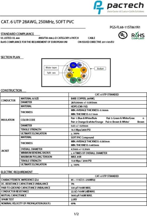- UL Verified to IEC 62821-1 LSHF(Low-Smoke-Halogen-Free) Jacket